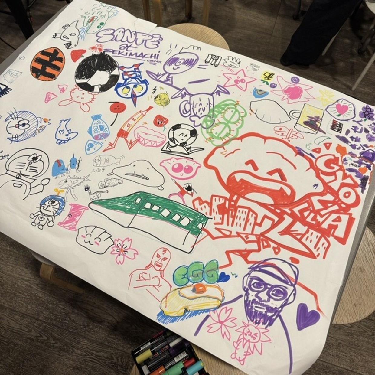 子供達が自由にペイントしながら一緒にアートを描きあげるワークショップ。