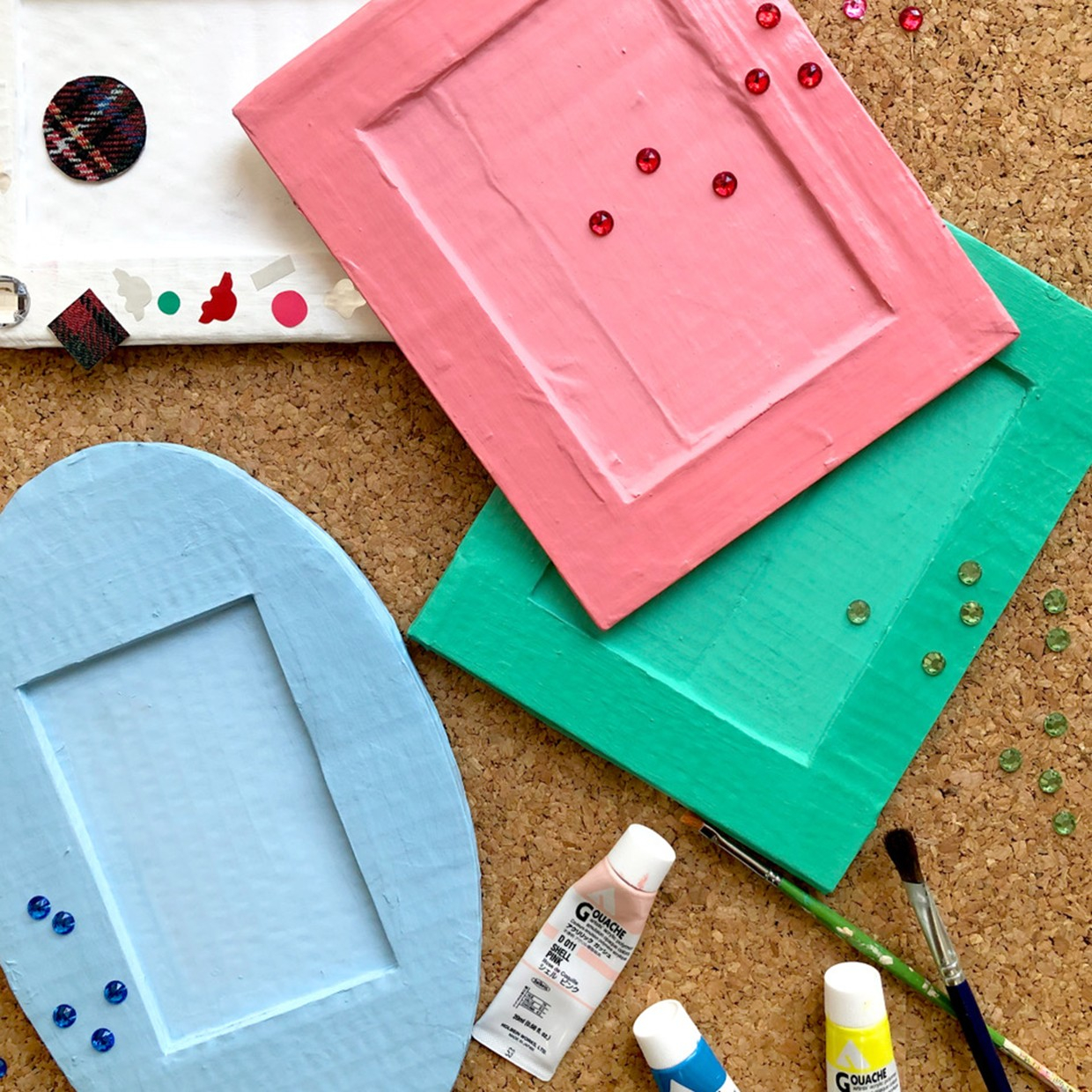 段ボール素材のL判用フォトフレームにデコレーションをして自分だけのオリジナルフォトフレームを作れるワークショップ。