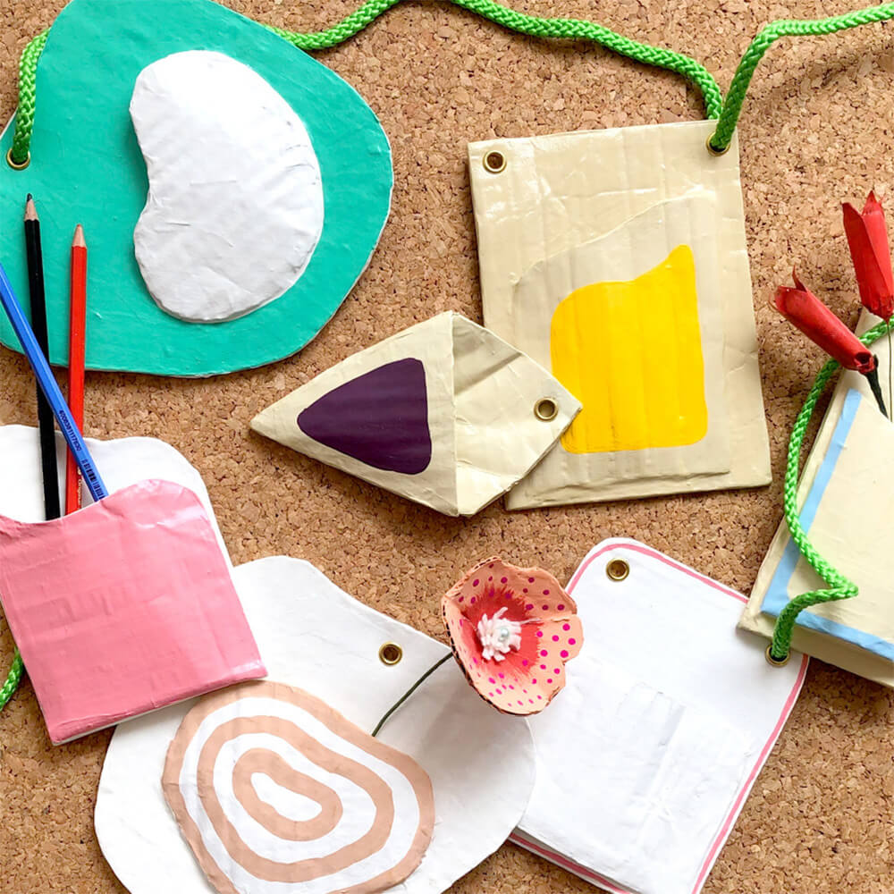 段ボールで出来ているポッケに絵の具で色をつけたり、シールやパーツでデコレーションしてポッケを作ります。