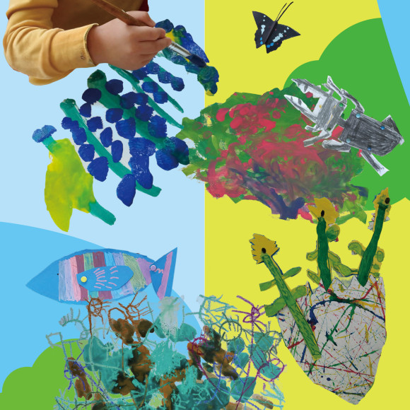 多様な素材と技法を用いた造形活動や絵画表現を通じて、子どもたちが主体的に思考し、自由に表現する力を養うことを目指しています。