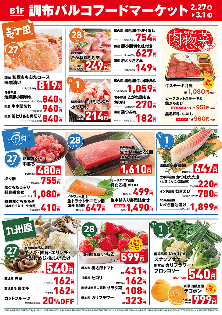 2/27(金)~3/1(日) パルコフードマーケットのチラシはこちら