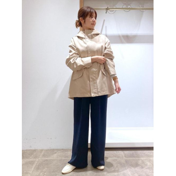 春らしいベージュのマウンテンパーカーにワイドパンツを合わせたコーデです!