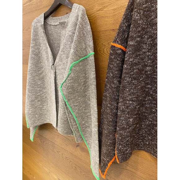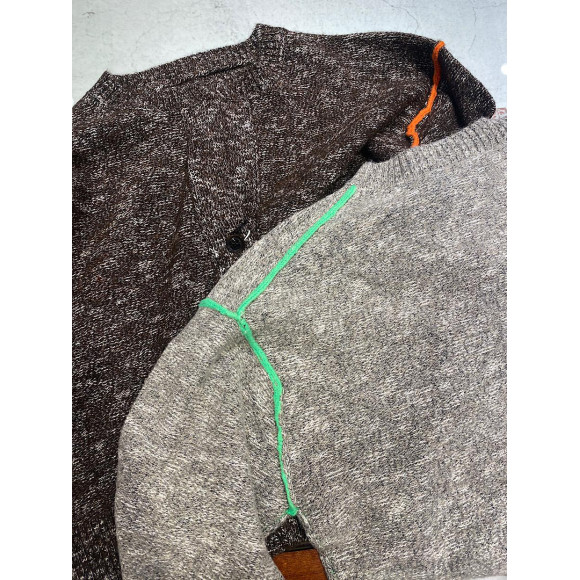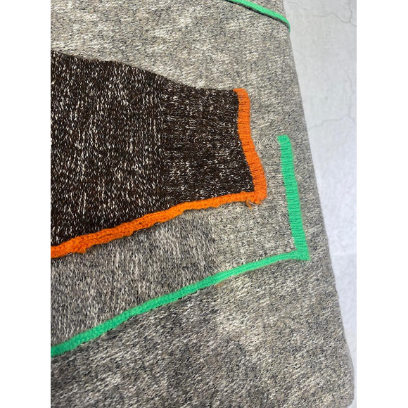 杢調でスラブの表情のある糸に蛍光カラーのラインが効いています。