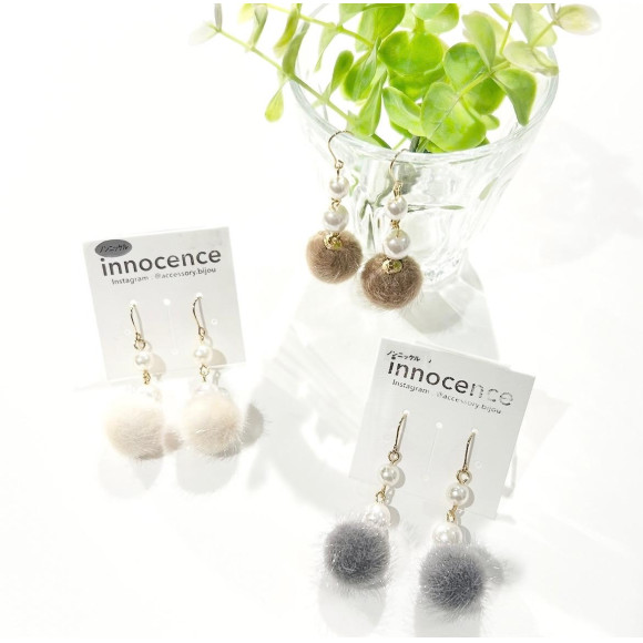 【ファーボールピアス】