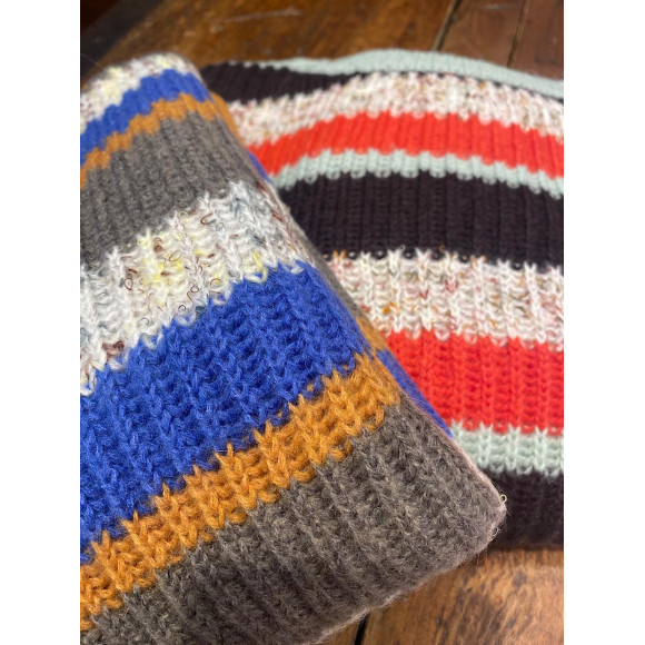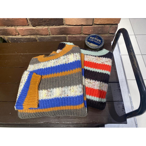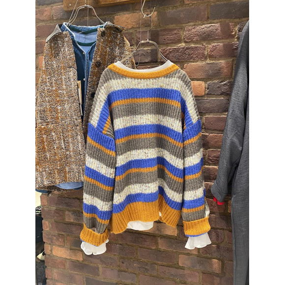 ざっくりとした編み地でカラフルな色の組み合わせがかわいいボーダーニット。