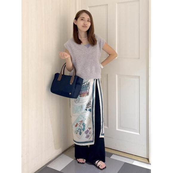 歩くとスカーフの裾がヒラヒラと動きが出て、スカーフを巻くことで体型カバー力◎安心感があります**