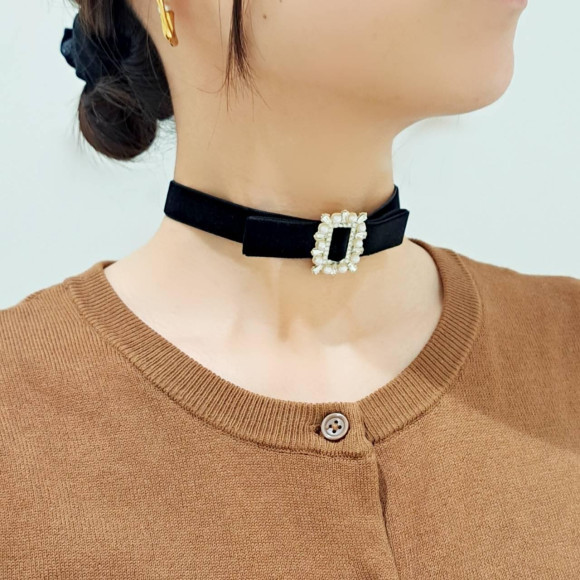 大きなビジューのついたベロア生地のチョーカーです♪ つけるとコーデがとても華やかに大人っぽくなりオススメです✨️
