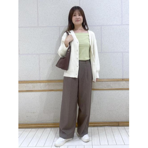 差し色としてグリーンのインナーを合わせています。