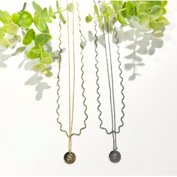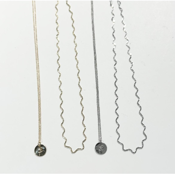 ウェーブのものと薔薇の模様がはいったコインのものがセットになったネックレスです✨️