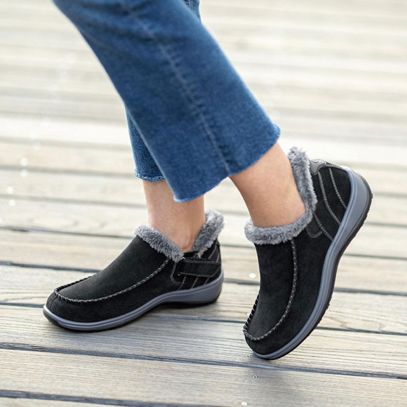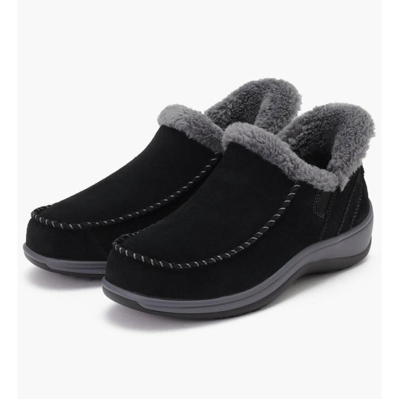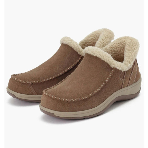 アッパーは柔らかスエードレザーを使用し、中はフェイクファーが足を暖かくし、刺激から守り、優しい履き心地です。
