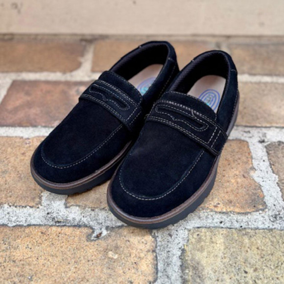 アッパーは柔らかスエードレザーを使用し、足に優しい履き心地です。