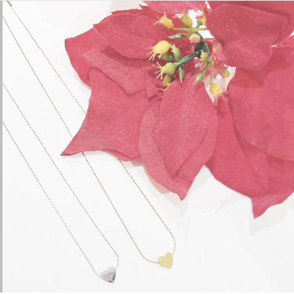 鎖骨に沿うようなデザインのチェーンに、メタルのシンプルなハートのトップがとってもオシャレ!