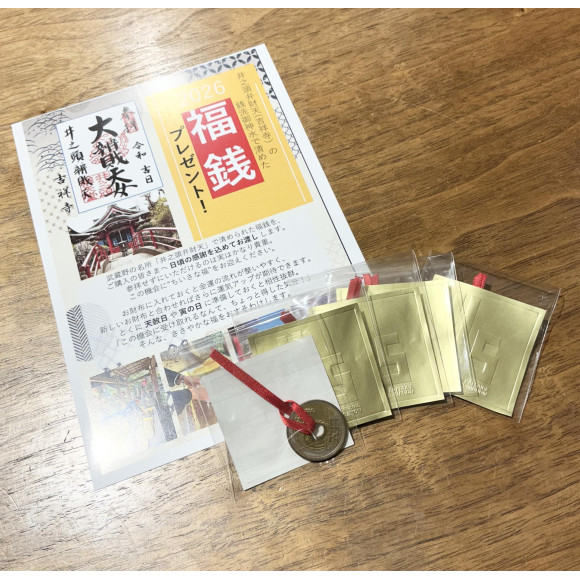 井之頭弁財天の銭洗御神水で清めた『福銭』をお渡ししております!