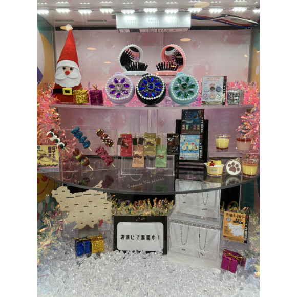 店頭のショーケースには、東京の街がアクリルキーホルダーとなったものや、キラキラと輝く豪華なコンパクトミラーやブラシ、まるで本物のようなスイーツモチーフの商品など、見ているだけでもワクワクする限定商品が盛りだくさん!