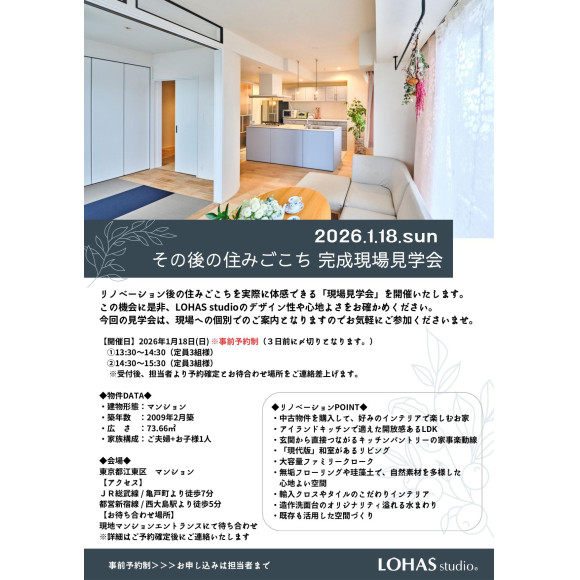◆1/18 sun【東京・デザインリノベ見学会】その後の住みごこち 完成現場見学会