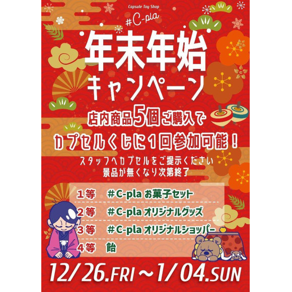店内商品5個ご購入で素敵なプレゼントがあたるカプセルくじに1回ご参加できます!