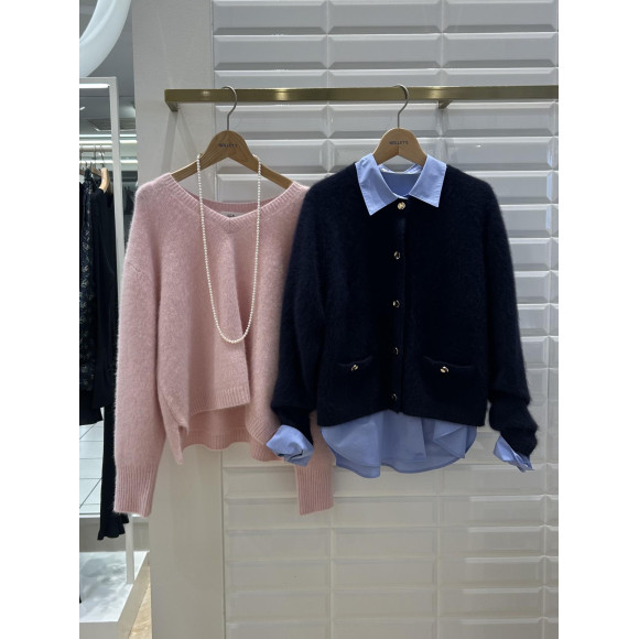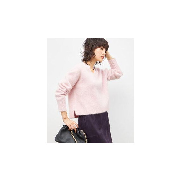 ◆ヘアリーストレッチVネックプルオーバーニット