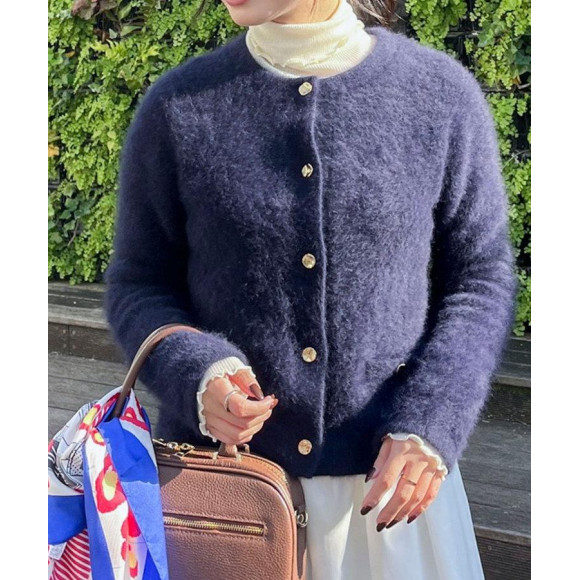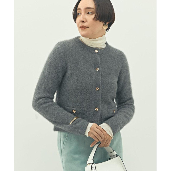 ◆ヘアリークルーネックニットジャケット