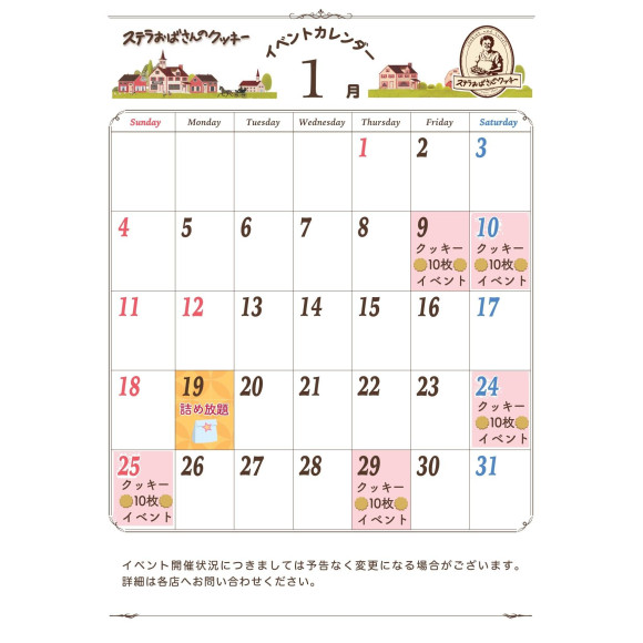 ステラおばさんのクッキー 1月イベントカレンダー