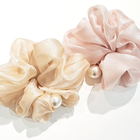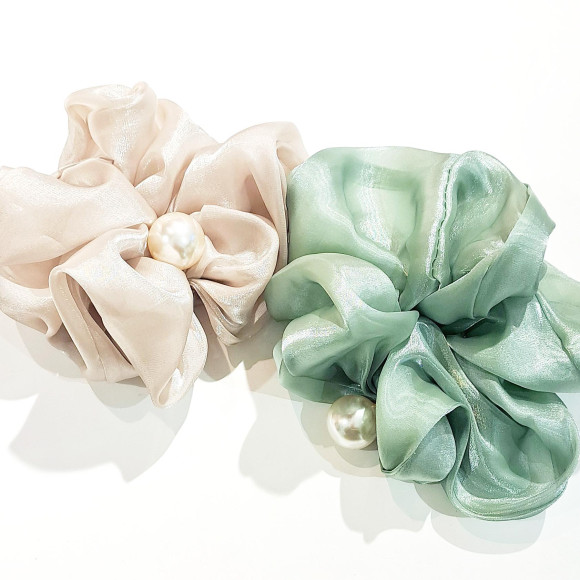 キラッと軽やかな生地感のシュシュで