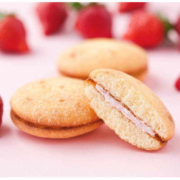 ふわっと軽い生地に、香り豊かで甘酸っぱいいちごクリームをサンド。