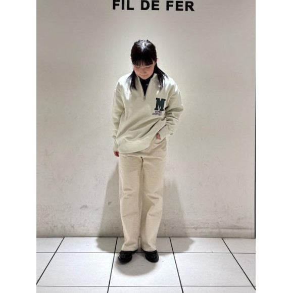 ややゆとりのあるハーフジップに、フレアなシルエットのコーデュロイパンツを合わせた抜け感のあるカジュアルスタイルにしました♀️