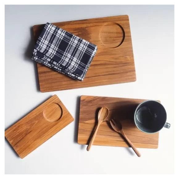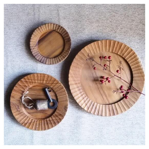 チーク材を使って作られたプレートたちが再入荷しました!