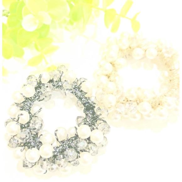 カットビーズとパールがとても可愛い新作シュシュのご紹介です♡