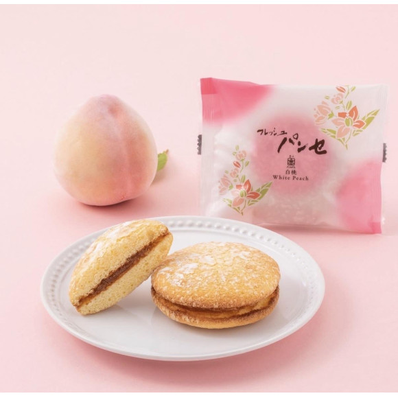 ふわっと、さくっと軽やかなブッセ生地に、さわやかな国産白桃ジャムをサンドしました。