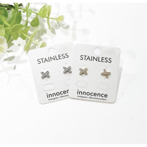 【ストーン付きクロスピアス ステンレス】