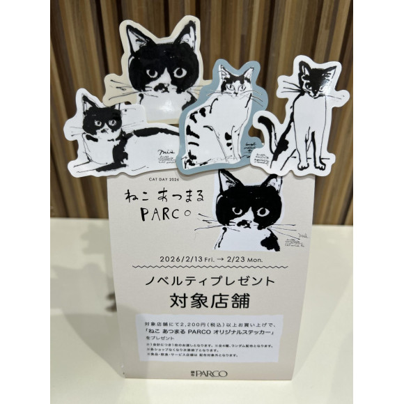 「ねこ あつまる PARCO オリジナルステッカー」をプレゼント!