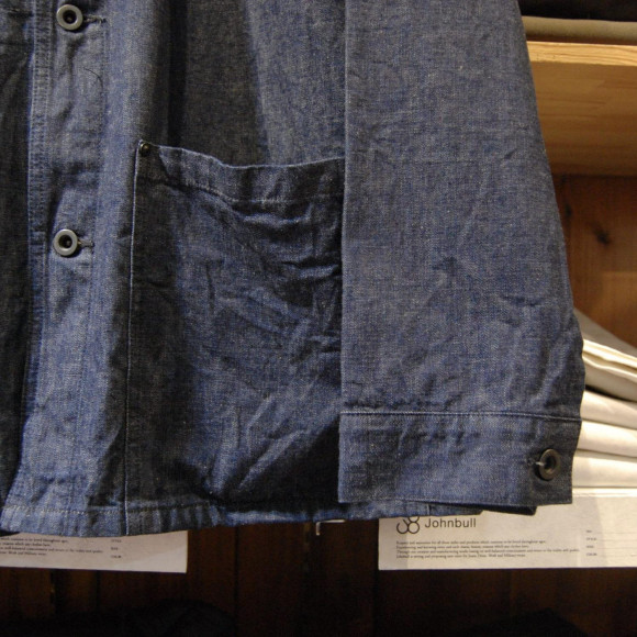 この手のアイテムはインナー次第で使い幅が広く、様々なシーンで活躍します!さらに生地が今回は10ozと薄手のデニムで裏地も付かないので着れるシーズンも長い訳です。ここも意図的に袖口をカフス仕様にしてあって、半袖に羽織って腕捲りしやすい様にしてくれてます。細かい心配りは日本のブランドらしいですね。