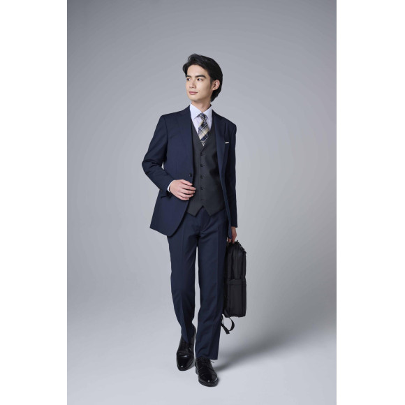 人気No.1のベスト付 紺シャドーストライプスーツ