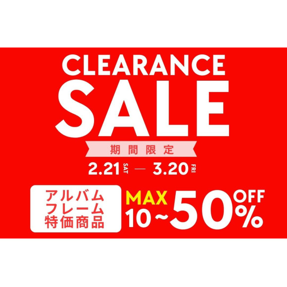 3月20日までの期間、当店のLINEお友だち会員登録の方を対象に店内のアルバム・額縁が全品10%オフとなるクリアランスセールを開催中です。