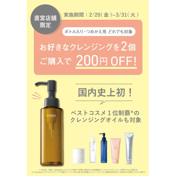 お好きなクレンジング2個ご購入で、200円オフ!!!