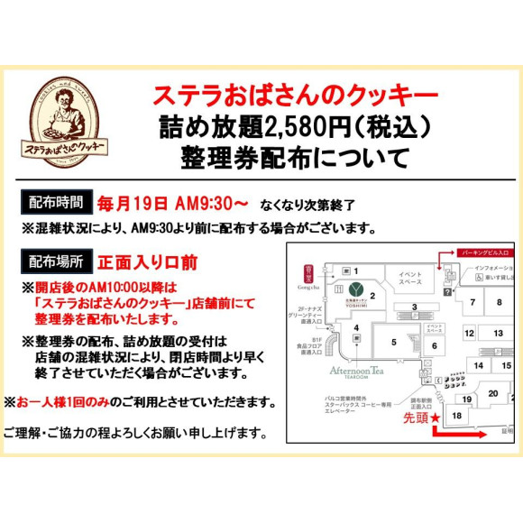 ※AM10:00以降はステラおばさんのクッキー店頭にて配布します。