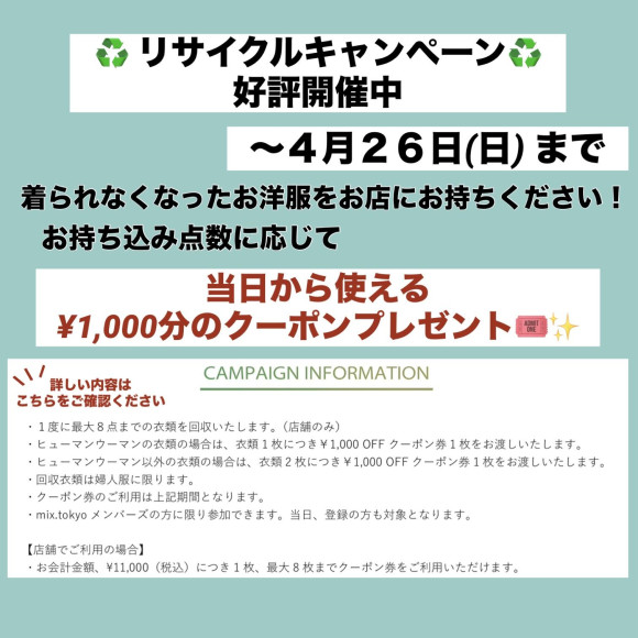 ぜひヒューマンウーマンのリサイクルキャンペーンをご利用ください!