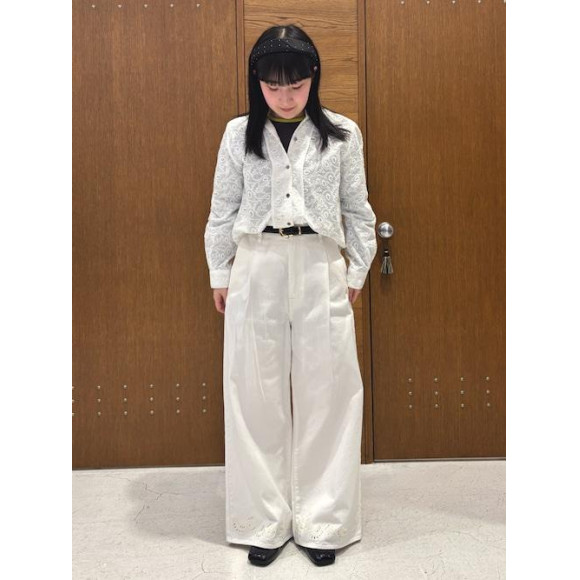 繊細なペイズリー刺繍が目を引くブラウスを主役に、ワイドパンツを合わせ上品×カジュアルなコーディネートにしました✨