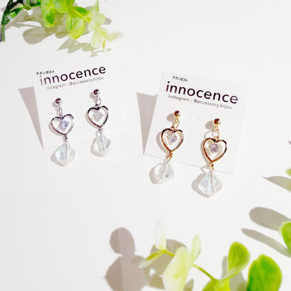 キュービック ハートピアス イヤリング