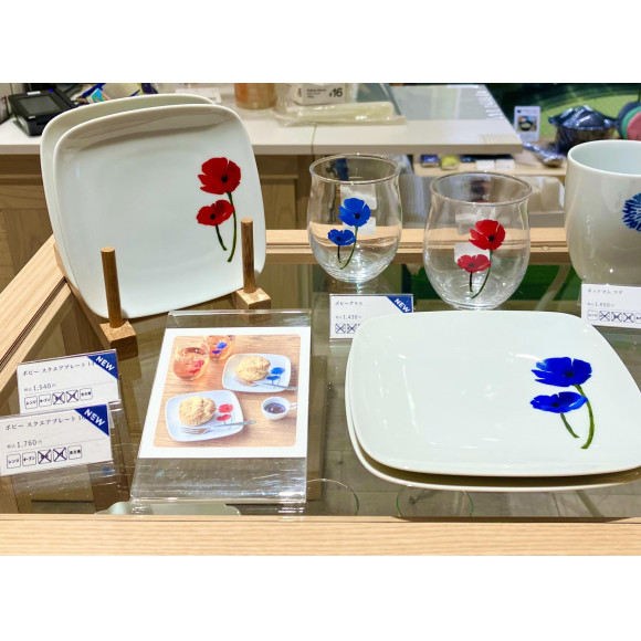 ポピー柄のスクエアプレートは