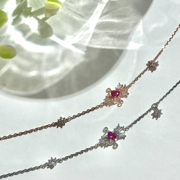 華奢なチェーンにさりげなく輝くストーンが、手首を美しく見せ、女性らしいやわらかな印象に仕上げてくれます!