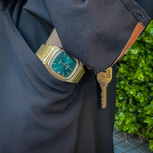 34mmの小径ケースなので女性には勿論、男性が着用した時にスーツやオフィスカジュアルなどの綺麗めに合わせやすい。