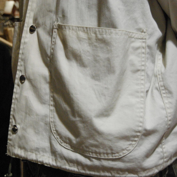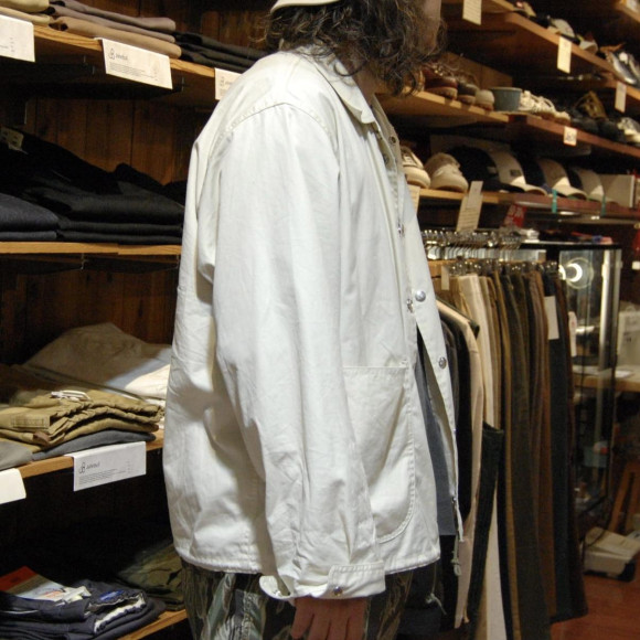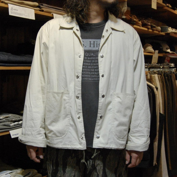作りはワークJKTとスポーツJKTの合いの子で、型がコーチジャケットのスポーツなのに対して、コーチジャケットでは珍しく丸みのある張りポケに袖のカフスが付いた、まさに汎用性の高いジャケットに仕上がっています。