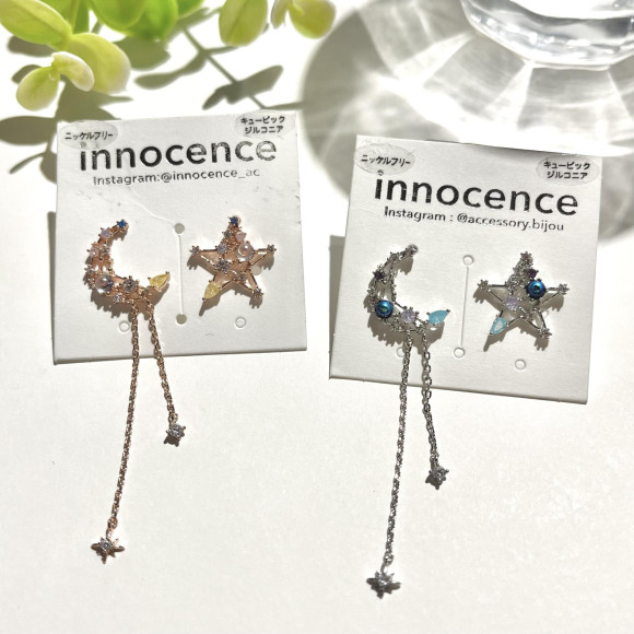 月と星がそっと寄り添う、ロマンティックなアシンメトリーピアス♡