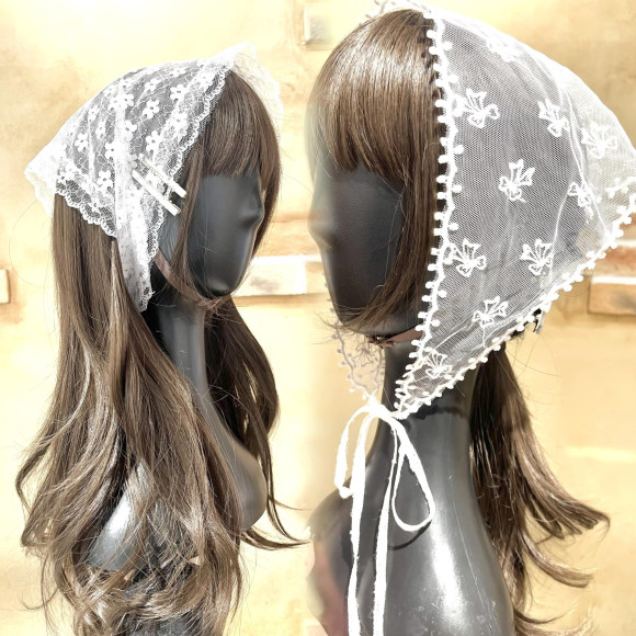 繊細なレースが顔まわりをふんわり包んでくれる、今季トレンドのバフーシュカです!