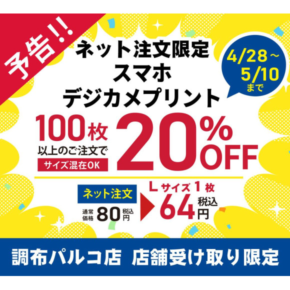 ネット注文限定の写真プリントセールを開催いたします。