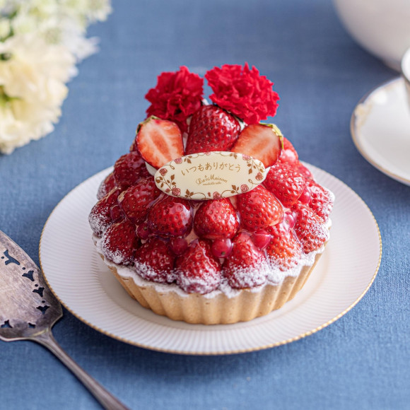 ラ・メゾンでは、カーネーションと真っ赤ないちごをあしらった、華やかな母の日限定タルトをご用意いたしました。